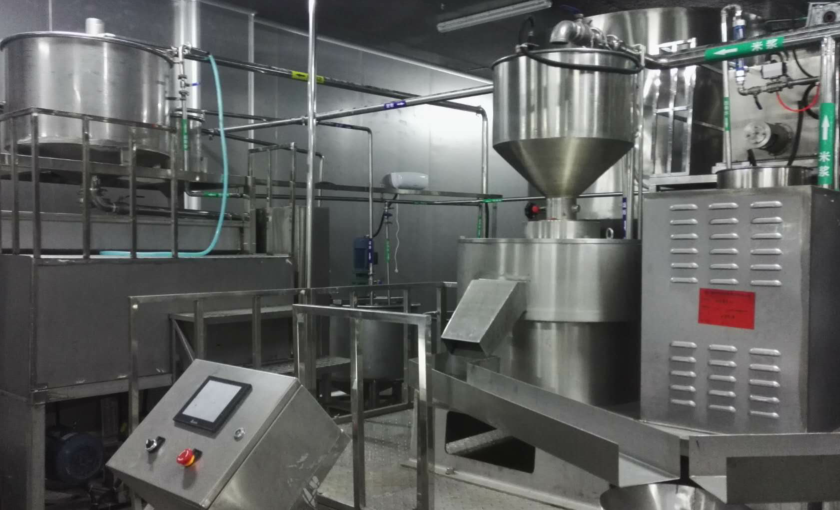 调制好的米浆泵入高位储浆罐,不停搅拌、均衡,防止沉淀;