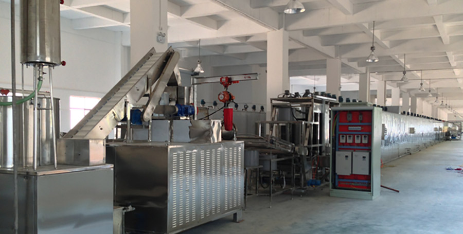 本生产线采用挤压非膨化技术,通过高压高温使杂粮淀粉糊化并形成条状;本设备适用于多种杂粮谷物,针对不同粮食的特性,只需调整相关的PLC参数,即可实现不同原料杂粮面条的生产。